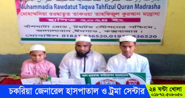 আল হুফফাজ ফাউন্ডেশন বাংলাদেশ কতৃক আয়োজিত চকরিয়ায় জাতীয় হিফজুল কোরান প্রতিযোগিতায় কক্সবাজার জেলা অডিশনেই এবার কৃতিত্ব ধরে রেখেছেন ঈদগাঁও উপজেলা স্বনামধন্য দ্বীনি শিক্ষা প্রতিষ্ঠান মোহাম্মদিয়া রও দ্বাতুত তাকওয়া তাহফিজুল কোরআন মাদ্রাসা।